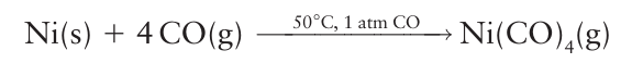 The two principal methods for the synthesis of monometallic metal carbonyls are direct combination of carbon monoxide with a finely divided metal and the reduction of a metal salt in the presence of carbon monoxide under pressure. Many polymetallic carbonyls are synthesized from monometallic carbonyls. In 1890 Mond, Langer, and Quinke discovered that the direct combination of nickel and carbon monoxide produced tetracarbonyl nickel (0), Ni (CO)4, a reaction that is used in the Mond process for purifying nickel (Box 22.1):