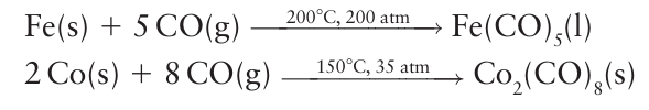 Tetracarbonyl nickel (0) is in fact the metal carbonyl that is most readily synthesized in this way, with other metal carbonyls, such as Fe (CO)5, being formed more slowly. They are therefore synthesized at high pressures and temperatures (Fig. 22.11):