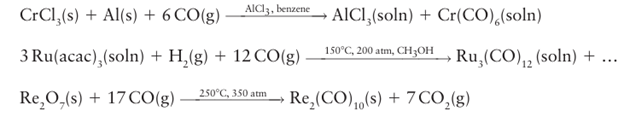 Key points: Some metal carbonyls are formed by direct reaction, but of those that can be formed in this way most require high pressures and temperatures; metal carbonyls are commonly formed by reductive carbonylation.