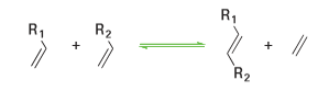 Key points: Alkene metathesis reactions are catalysed by homogeneous organometallic complexes that allow considerable control over product distribution; a key step in the reaction mechanism is the dissociation of a ligand from a metal centre to allow an alkene to coordinate. In an alkene metathesis reaction carbon–carbon double bonds are redistributed, as in the cross metathesis reaction: