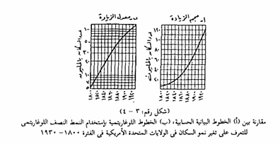 من العيوب الأساسية في طريقة الخطوط أو المنحنيات البيانية المتعددة -Poly graphs أنها تعطينا مجموعة من الخطوط أو المنحنيات التي يصعب تفسيرها بسبب زيادة عددها وكثرة تقاطعها ولكن يمكن الاستعانة بطريقة مبتكرة تعطينا احساس بالمنظر العام Panoramic effect لمنحنيات الاتجاه العام وذلك حتى تسهل عملية المقارنة بين هذه المنحنيات ومثل ذه المقارنات لها أهميتها وفائدتها في حالة الرغبة في ابراز وتوضيح أن اتجاه عام كان يتميز به تطور السكان في منطقة ما فيما مضى، مازال صحيحا وحقيقيا السكان آخرين بنفس المنطقة في الوقت الحاضر، أو بعبارة أخرى أن الاتجاه العام لتطور السكان في الوقت الحالى هو صورة طبق الأصل لتطورهم في الماضي ومنه يمكن تقدير الاحتمالات المستقبلية لهذا التطور على أساس الاتجاه العام الحالي.