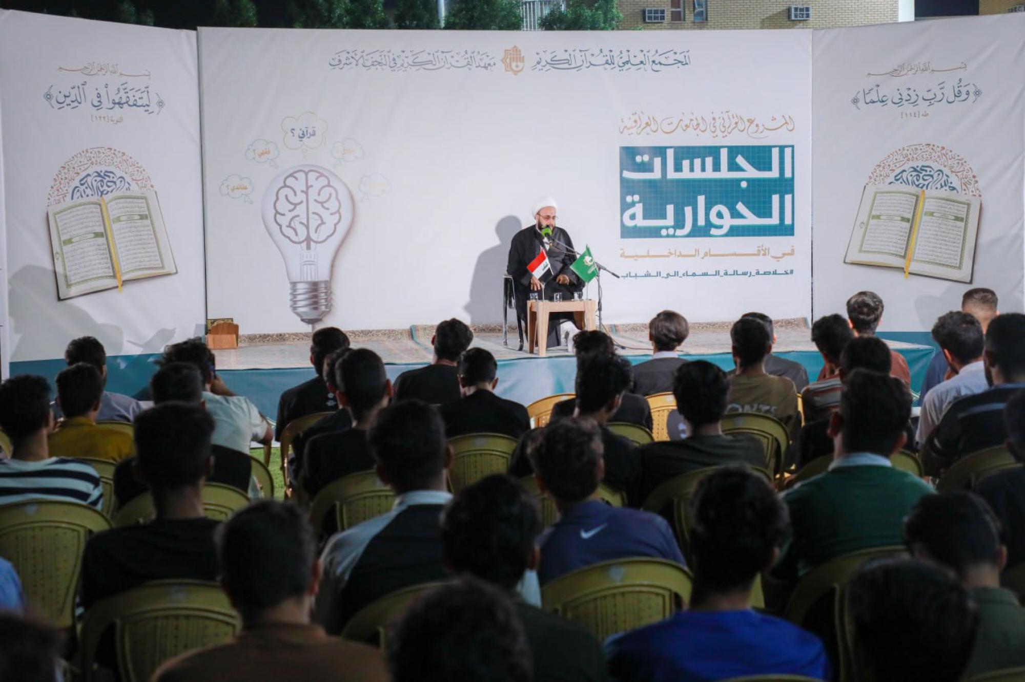 أطلق المجمع العلمي للقرآن الكريم في العتبة العباسية المقدسة برنامج الجلسات الحوارية، في الأقسام الداخلية، ضمن المشروع القرآني في الجامعات العراقية بدورته السادسة للعام الدراسي (2025–2026م). وقال مسؤول وحدة النشاطات القرآنية في معهد القرآن الكريم في النجف الأشرف التابع للمجمع، السيد الفضل عباس، إنَّ "المعهد أقام أولى الجلسات القرآنية في جامعة الكوفة بحضور أكثر من 200 طالب، واستهل البرنامج بتلاوة عطرة للقرآن الكريم، أعقبتها قراءة دعاء التوسل بصوت قارئ المعهد محمد علي رشيد". وأضاف، أنَّ" الجلسة تضمنت محاضرة توعوية ألقاها الشيخ أسامة الفضلي تناول فيها الوصية الأولى من وصايا المرجعية الدينية العليا للشباب، تلتها جلسة حوارية سلطت الضوء على أهم مرتكزات العقيدة الإسلامية، وكيفية بناء الفهم الصحيح للقرآن الكريم وفق منهج أهل البيت (عليهم السلام)، فيما اختتم البرنامج بمسابقة تم خلالها تكريم ثلاثة فائزين".
