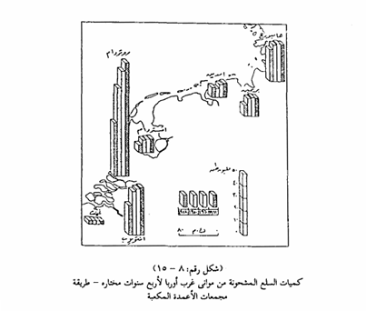 فقد قسم رويس الفراغ الهندسى للشكل الحجمي إلى وحدات يمكن حصرها عددها أو قياسها، ولاشك أن هذه الطريقة مفيدة وعمدية حينما تستخدم في التوزيعات العظيمة التركيز المكاني ، مثل توزيع الإنتاج الصناعي والمعدني لمناجم الفحم أو الفوسفات بالطن، أو لتصويرحركة الصادرات والواردات أو تفريغ أو شحن السلع في الموانى المختلفة مما يوضح الأهمية النسبية لهذه الموانى خاصة إذا رسمت هذه الأعمدة المكعبة على أساس مقياس زمني وتتميز الأعمده المجمعه بشكلها الخطي البسيط الذي يمكن تقديره بصريا بمساعدة مقياس رسم يمكن إضافته على أنه يعاب على هذه الطريقة أن الأعمدة المكعبة تكون ضعيفة التوجيه بالنسبة للمكان خاصة إذا زاد طول العمود حيث يصبح التقييم البصري لهذا العمود أكثر انعزالا عن الموضع الحقيقي المفروض أن العمود يمثله ومع ذلك فإن استخدام الأعمدة المجمعة في تمثيل حركة موانى الشحن والتفريغ أكثر شيوعا منه في تمثيل أي نوع آخر من أنواع النشاط الاقتصادي.