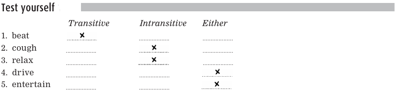 Let’s use these Quick tips to decide which of the following verbs are transitive and which are intransitive: