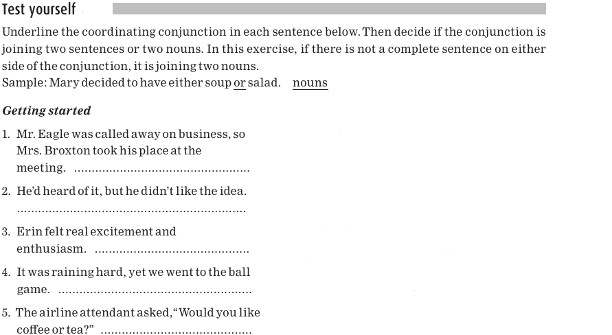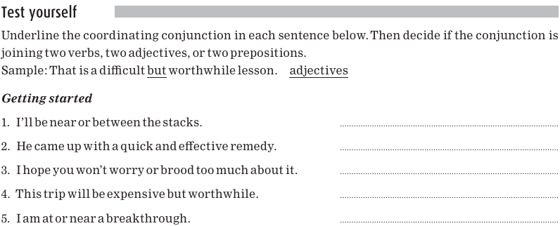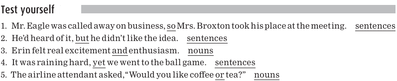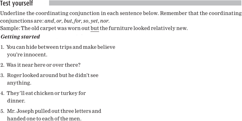 The coordinating conjunctions in the sentences below are underlined.