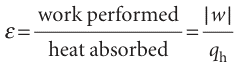 Because |qc| is removed from the cold source, and the work |w| is added to the energy stream, the energy deposited as heat in the hot sink is |qh|=|qc|+|w|. Therefore,