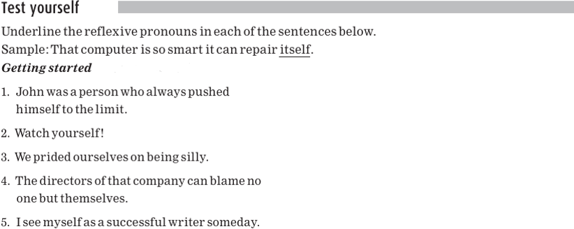 Quick tip lists the reflexive pronouns. They’re easy to identify because they all end in-self or-selves.