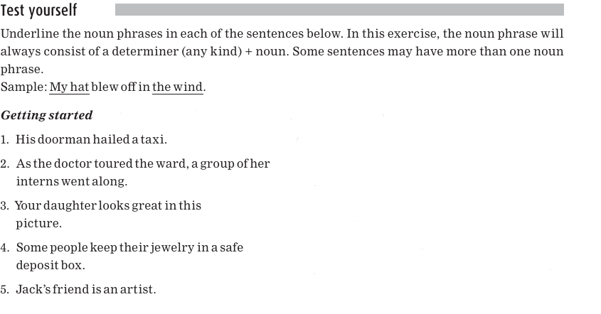 Here are the noun phrases again, with the nouns underlined: