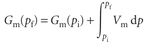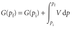 To find the Gibbs energy at one pressure in terms of its value at another pressure, the temperature being constant, we set dT = 0 in eqn 3.49, which gives dG = Vdp, and integrate: