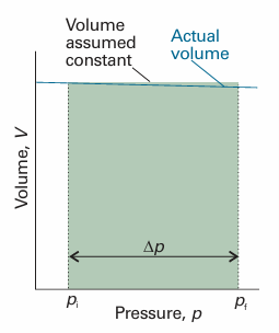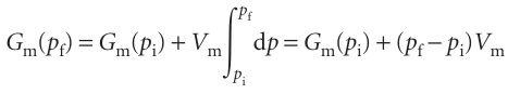 This expression is applicable to any phase of matter, but to evaluate it we need to know how the molar volume, Vm, depends on the pressure. The molar volume of a condensed phase changes only slightly as the pressure changes (Fig. 3.21), so we can treat Vm as a constant and take it outside the integral: