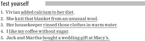 To sum up, we list below the kinds of verb phrases we’ve discussed: