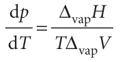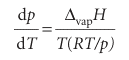 Because the molar volume of a gas is so much greater than the molar volume of a liquid, we can write ∆vapV ≈ Vm(g) (as in Example 4.2). Moreover, if the gas behaves perfectly, Vm(g) = RT/p. These two approximations turn the exact Clapeyron equation into