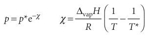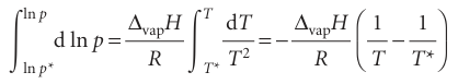 Where p* is the vapour pressure when the temperature is T* and p the vapour pressure when the temperature is T. Therefore, because the integral on the left evaluates to ln(p/p*), the two vapour pressures are related by
