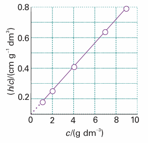 Fig. 5.28The plot involved in the determination of molar mass by osmometry. The molar mass is calculated from the intercept at c=0; in Chapter 19 we shall see that additional information comes from the slope.