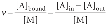 We have used [MA] = [A]bound and [M]free = [M] − [MA] = [M] − [A]bound. On division by [M], and replacement of [A]free by [A]out, the last expression becomes