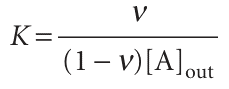 Fig. 5.30 A Scatchard plot of ν/[A]out against ν. The slope is –K and the intercept at ν = 0 is KN.