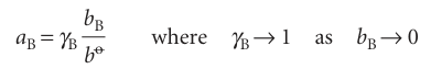Now, as before, we incorporate deviations from ideality by introducing a dimensionless activity aB, a dimensionless activity coefficient γB, and writing