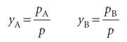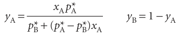 The compositions of the liquid and vapour that are in mutual equilibrium are not necessarily the same. Common sense suggests that the vapour should be richer in the more volatile component. This expectation can be confirmed as follows. The partial pressures of the components are given by eqn 6.2. It follows from Dalton’s law that the mole fractions in the gas, yA and yB, are