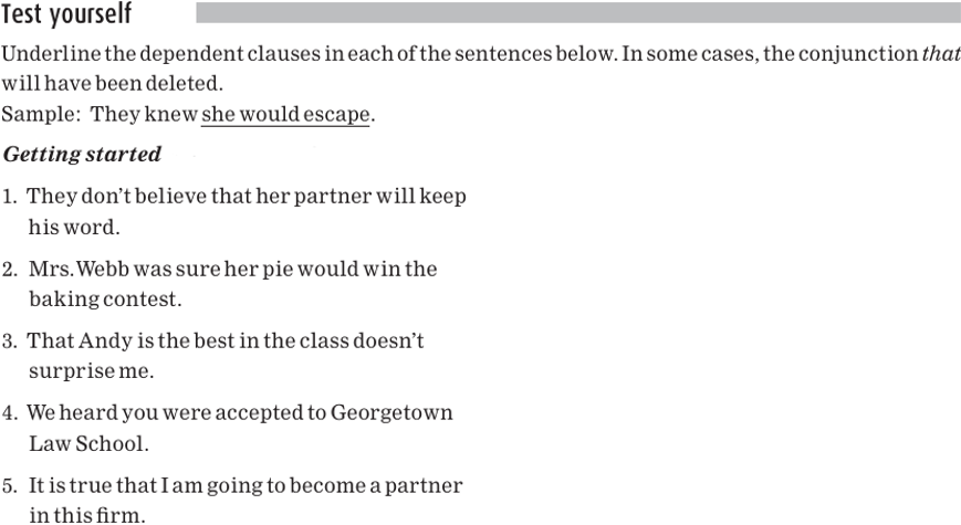 The main clause of each of the following sentences is in bold; the dependent clause is underlined: