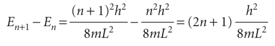 This lowest, irremovable energy is called the zero-point energy. The physical origin of the zero-point energy can be explained in two ways. First, the uncertainty principle requires a particle to possess kinetic energy if it is confined to a finite region: the location of the particle is not completely indefinite, so its momentum cannot be precisely zero. Hence it has nonzero kinetic energy. Second, if the wavefunction is to be zero at the walls, but smooth, continuous, and not zero everywhere, then it must be curved, and curvature in a wavefunction implies the possession of kinetic energy. The separation between adjacent energy levels with quantum numbers n and n + 1 is