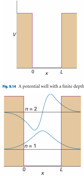 where Vis the depth of the well and L is its length (for a derivation of this expression, see Further reading). We see that the deeper and wider the well, the greater the number of bound states. As the depth becomes infinite, so the number of bound states also becomes infinite, as we have already seen.