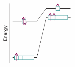 Fig. 10.21 Strong electron–electron repulsions in the 3d orbitals are minimized in the ground state of Sc if the atom has the configuration [Ar]3d1 4s2 (shown on the left) instead of [Ar]3d2 4s1 (shown on the right). The total energy of the atom is lower when it has the [Ar]3d1 4s2 configuration despite the cost of populating the high energy 4s orbital.