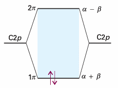 Fig. 11.38 The Hückel molecular orbital energy levels of ethene. Two electrons occupy the lower π orbital.