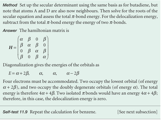 where N is the number of carbon atoms in the molecule. The π-bond formation energy in butadiene, for instance, is 4.48β