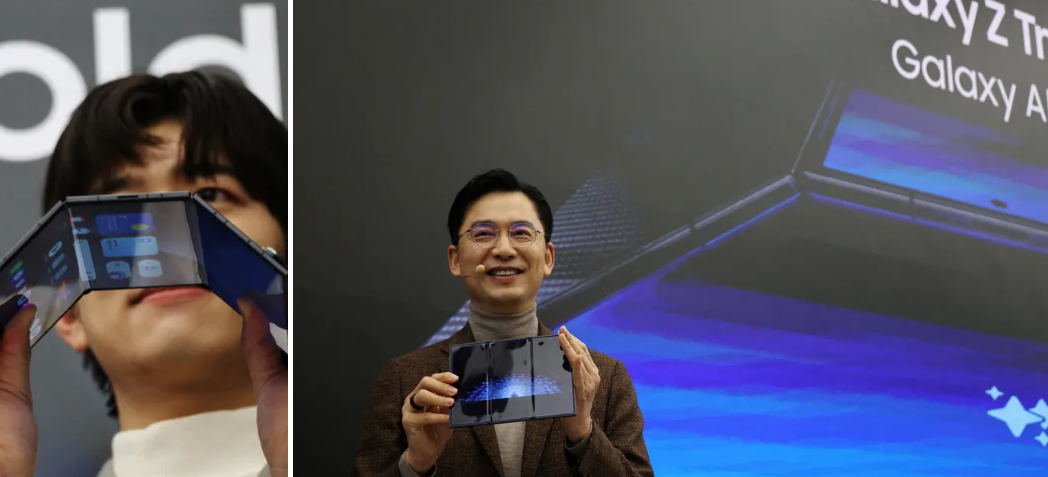 كشفت شركة سامسونغ للإلكترونيات اليوم الثلاثاء عن أول هاتف ذكي ثلاثي الطي في محاولة لتعزيز موقعها في قطاع من سوق الهواتف من المتوقع أن تشتد فيه المنافسة. ويمثل طرح هاتف (غالاكسي زد تراي فولد) خطوة من سامسونغ لترسيخ موطئ قدم لها في فئة تحقق فيها الشركات الصينية تقدما كبيرا، رغم أن محللين يقولون إن الأجهزة القابلة للطي لن تحقق انتشارا واسعا في الوقت الراهن بسبب ارتفاع أسعارها والتحديات التي تعوق الإنتاج. ويبلغ سعر الهاتف نحو 2440.17 دولار ويمكن فرده ليتحول إلى شاشة عرضها 253.1 مليمتر (10 بوصات) مكونة من 3 لوحات، وهو أكبر بنحو 25 % من أحدث هواتف سامسونغ القابلة للطي غالاكسي زد فولد 7. وقال أليكس ليم، نائب الرئيس التنفيذي ورئيس مكتب المبيعات والتسويق في كوريا لدى سامسونغ للإلكترونيات "أعتقد أن سوق الأجهزة القابلة للطي ستواصل النمو، وأن جهاز تراي فولد على وجه الخصوص يمكن أن يعمل كمحفّز يدفع إلى نمو أكبر في أجزاء رئيسية من هذا القطاع".