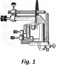 A type of lamp much used in projection lanterns is the 90° angle lamp, one form of which is shown in Fig. 1. When used with the direct current the horizontal carbon is made the positive pole and its crater is kept in the axis of the lantern. The positive carbon wears away twice as fast as the negative, but both carbons can be kept in place as they wear away by being pushed forward by separate feeding screws. This form of lamp can also be used with the alternating current, in which case they are fed at an equal rate.