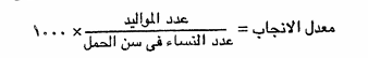 ويكون المعدل في المجتمع الثاني هو 8,8 فى الألف فقط ومعنى ذلك أن المجتمع الأول يتزايد بمعدل أسرع مما يتزايد به المجتمع الثاني - نظريا على الأقل لأن الوفيات هنا لم تحسب بعد - وكمثال واقعى فان جملة سكان مصر في تعداد 1966 بلغت حوالى 7600 0 30 نسمة وبلغ عدد المواليد في تلك السنة حوالی 235000 را مولودا وبذلك يكون معدل المواليد الخام حوالي 41 في الألف في ذلك العام ويصل الى 37 فى الألف في عام 1981 ثم ينخفض إلى 309 في الألف في عام 1990 وينبغي أن نشير إلى أننا نضرب في ألف حتى نقلل من الكسور الى أقصى حد ممكن. وقد يكون معد المواليد الخام Crude birth rate مفيدا في المقارنات السريعة خاصة لدى الجغرافيين ، ولكنه لايفى كثيرا بأغراض البحث في الديموجرافيا وذلك لأنه لا يدخل فى الاعتبار تركيب السكان من حيث النوع والعمر ، وقد يؤثر ذلك - ويفسر أيضا في أسباب انخفاض أو ارتفاع المعدلات ومن أمثلة ذلك أن بعض المجتمعات المهاجرة قد ترتفع فيها نسبة الذكور عن الاناث مما يقلل من معدل المواليد الخام بينما يكون عدد النساء القليل في هذه المجموعة متميزا بارتفاع معدلات الانجاب وكثرة الأطفال ، ومن أجل التغلب على يجرى حساب معدل الانجاب Fertility rate كما يلي: