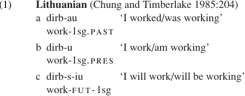 While our words for speaking about time make a three-way distinction between past, present, and future, it is actually somewhat unusual for a language to encode all three of these categories morphologically. One language which does have this property is Lithuanian; note the different verb forms in the following examples: