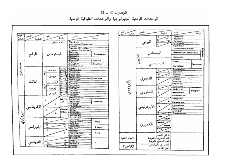 إن اللجنة الفرعية العالمية للتقسيمات الطباقية قد أوصت خلال السنوات الأخيرة بالتقسيم الموضح في الجدولين 4 - 1 و 4 - 2.