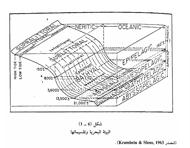 (أ) المنطقة الساحلية أو منطقة المد والجزر (Littoral Toner) وهي بيئة انتقالية وقد تطرقنا إليها.