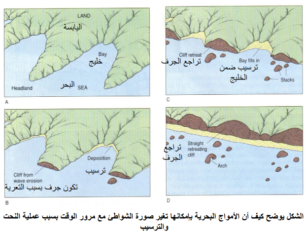 مدى تأثر الساحل بفعل مياه الأمواج والتيارات البحرية وحركة المد والجزر