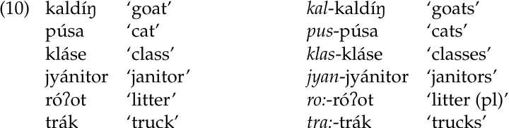 The inclusion of borrowings in the data set above shows that reduplication is a productive means of forming plurals in Ilokano.