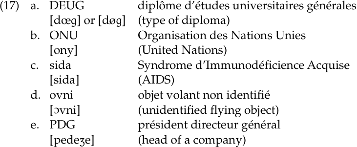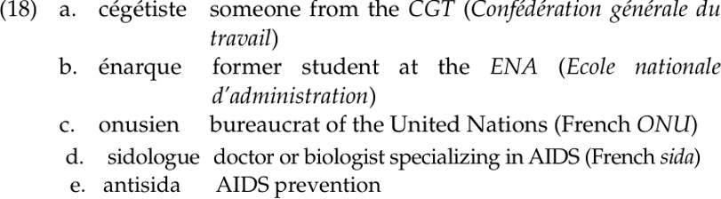 A characteristic of acronyms in some languages is that they can serve as the base for further morphological operations, particularly affixation, as in the following French examples: