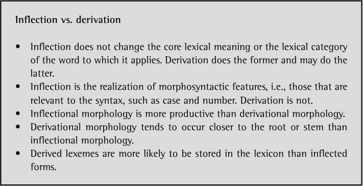 Differences between inflection and derivation