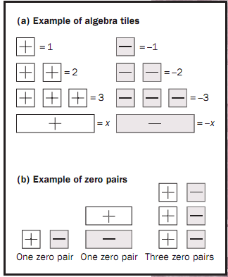 Figure 1. Examples ofalgebra tiles and zero pairs.