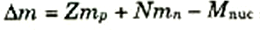 حيث mp و mn هما كتلتا بروتون ونيوترون حرين، أما MDuc فهي الكتلة الحقيقية للنواة المكتملة. وتنص نظرية النسبية على أن النقص الكتلي مرتبط بطاقة الربط الكلية للنواة: