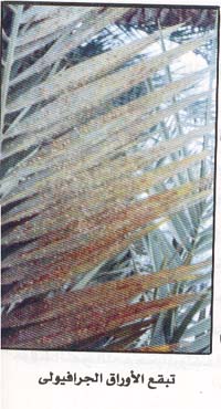 1- ظهور بقع سوداء ممتدة على حواف السعف الحديث مما يؤدى لتعرجه وتشوهه.