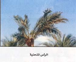 3- اسوداد وتفحم وأنسجة قلب الفسيلة أو قمة الجذع في النخيل المثمرة عند إصابته.