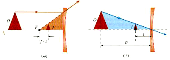 2- بعد الصورة i موجب إذا تكونت الصورة خلف العدسة (صورة حقيقية) وسالب إذا تكونت الصورة أمام العدسة( صورة تقديرية).