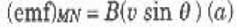 سنحسب ق. د. ك المستحثة في الضلع MN الذي يتحرك بسرعة v خلال المجال وذلك بحساب v┴ أولاً ، وهي مركبة السرعة v ، المتعامدة مع B بالرجوع إلى الشكل (2 ب) نجد أن v┴ = v sin θ وبما أن الضلع MN والمجال B ، والسرعة v┴ تتعامد فيما بينها فإن ق. د. ك المستحثة في MN ستكون :