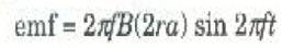 حيث w هي السرعة الزاوية الثابتة للملف و f هو تردد الدوران للملف أن ω تقاس بوحدات الزوايا النصف قطرية في الثانية ويقاس f بوحدات هيرتز. وبالإضافة إلى هذا ، فالزاوية θ هي ببساطة زاوية دوران العروة وتتزايد باستمرار حسب العلاقة :