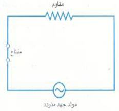 وهكذا يصير واضحاً مما تقدم أن ملف السلك الذي يدور بسرعة زاوية ثابتة في مجال مغناطيسي ، ستتولد عند طرفيه ق. د. ك مترددة. ولو أن مثل ها المولد هو المستخدم كمصدر للقدرة في الدائرة البسيطة المبينة في الشكل ((4 ، فإن التيار المار في المقاوم سيعكس اتجاه 2f مرة كل ثانية.