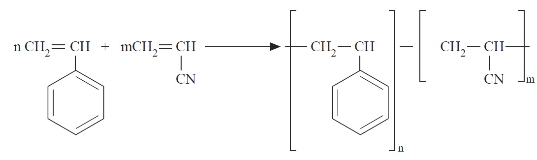 Polymers may be either homopolymers or copolymers depending on the composition. Polymers composed of only one repeating unit in the polymer molecules are known as homopolymers. However, chemists have developed techniques to build polymer chains containing more than one repeating unit. Polymers composed of two different repeating units in the polymer molecule are defined as copolymers. An example is the copolymer (1) formed when styrene and acrylonitrile are polymerized in the same reactor. The repeating unit and the structural unit of a polymer are not necessarily the same. As indicated earlier, some polymers such as nylon 6,6 and poly(ethylene terephthalate) have repeating units composed of more than one structural unit. Such polymers are still considered homopolymers.