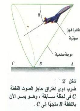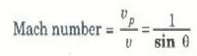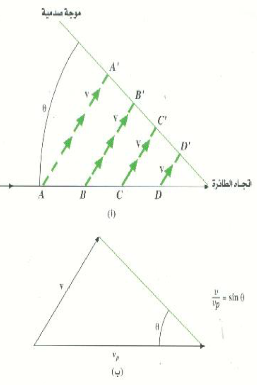 لاحظ ان الزاوية θ تثل بزيادة سرعة الطائرة . وتعرف النسبة بين سرعة الطائرة وسرعة الصوت vp/v بالعدد الماخي (Mach number).