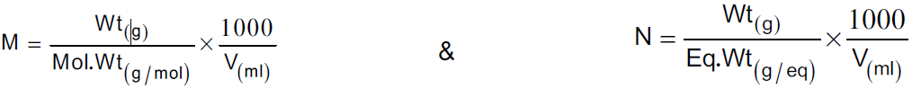 وعموماً يمكن أن تحسب عيارية أو مولارية أي محلول قياسي لأي مادة إذا علمنا وزن المادة بالجرام وحجم