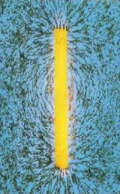 تتوجه قطع برادة الحديد بواسطة المجالات المغناطيسية لمغناطيس على هيئة قضيب أو حذوة حصان مشكلة بهذا أنماط المجالات.
